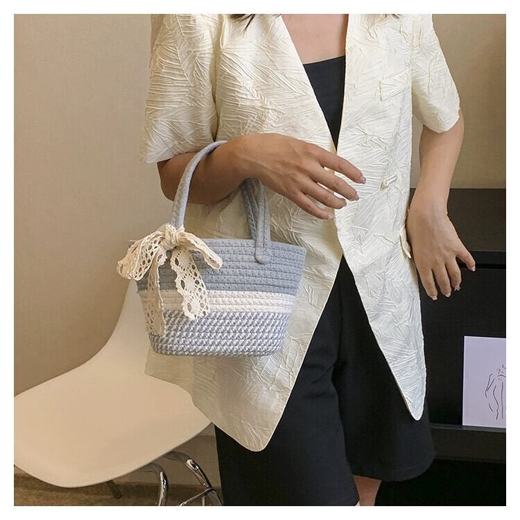 織バッグ女性のわら織りバッグ 2023 新しいトレンディなファッションオールマッチカラーコントラストハンドバッグ海辺の休暇バッグバケットバッグ maibag57567058099