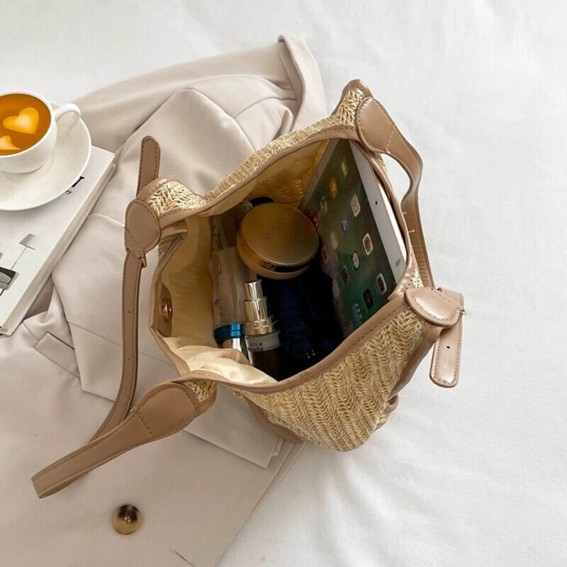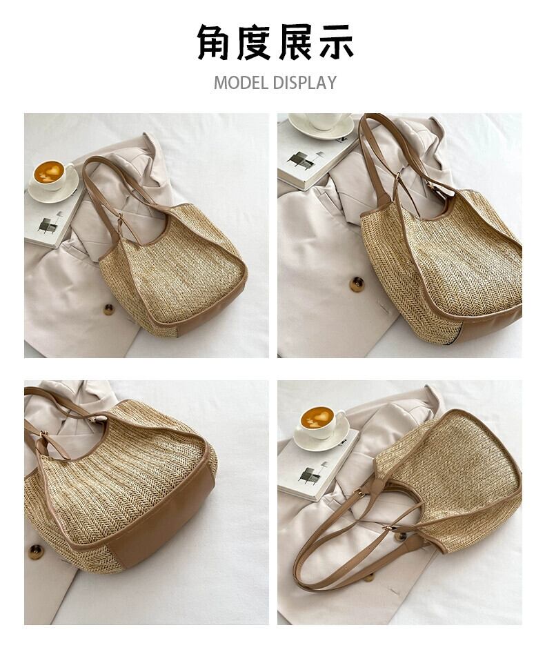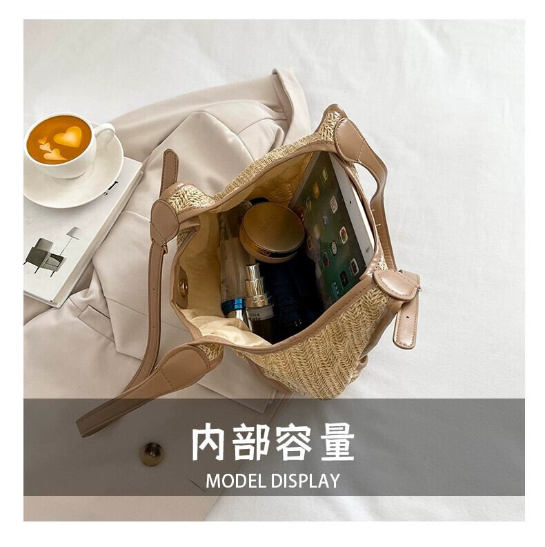 織りバッグの女性の 2023 夏の新しいトレンディなファッションレトロなわら織りバッグオールマッチ大容量ショルダートートバッグ サマー 夏物 maibag50898440386