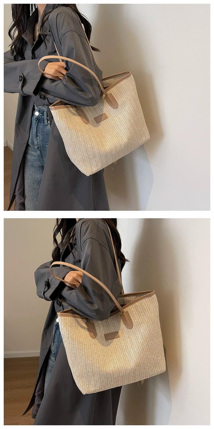 eign-style わら織りバッグ女性 2023 新しいハイエンド織りバッグ大容量通勤ショッピングバッグトートビーチバッグ トートバッグ maibag6300096542