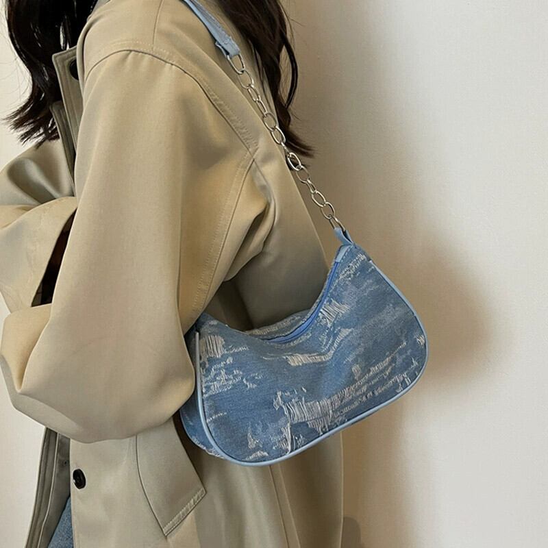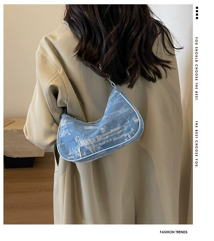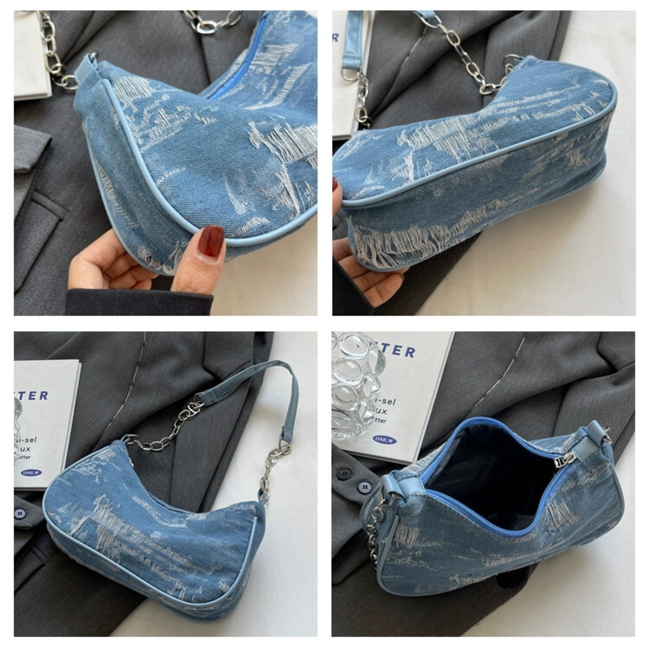 デニムキャンバスバッグ女性 2023 新ファッションニッチ穴乞食脇の下バッグ多用途インチェーンショルダーバッグ maibag46429685953