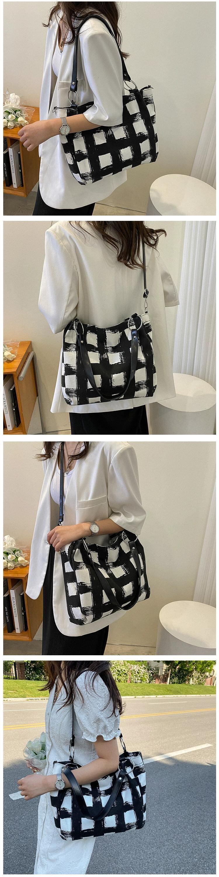 大容量キャンバスバッグレディース2022新作人気市松ハンドバッグ学生cl通勤トートショルダー トートバッグ maibag26796323218