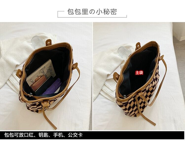 秋と冬の市松模様の毛皮のようなバッグの女性 2021 新しい大容量ショルダーバッグニッチ毛皮のようなポータブルトートバッグ オータム 秋物 ウィンター 冬物 maibag12741349807
