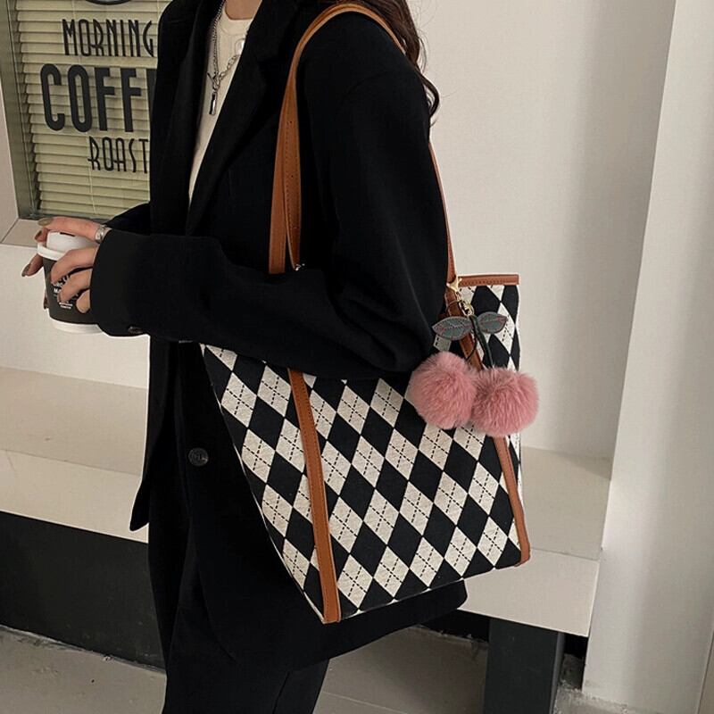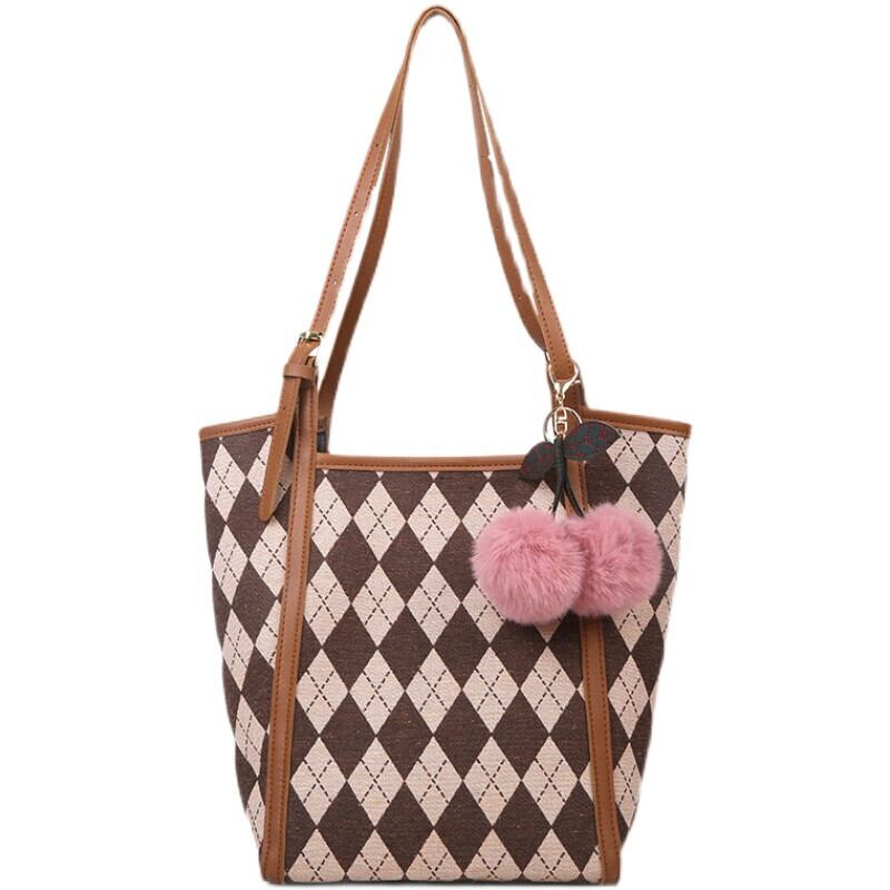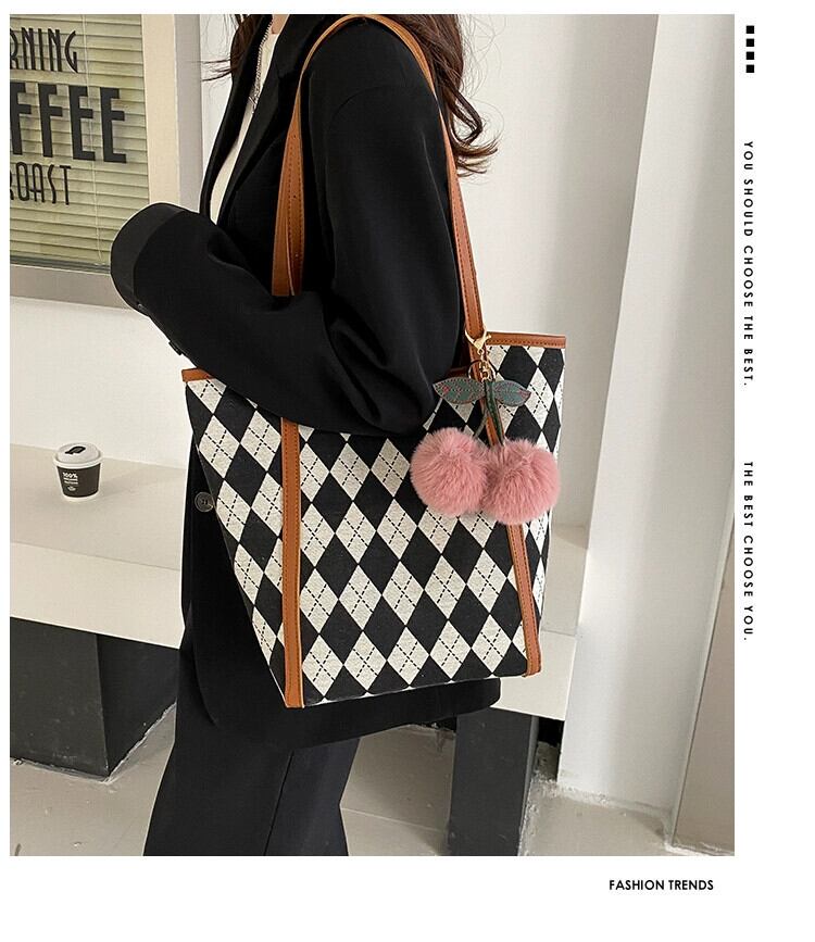-endカジュアルで多用途なワンショルダー大容量バッグレディース2021秋冬新作cl菱形バケットトートバッグ オータム 秋物 ウィンター 冬物 maibag4516476303