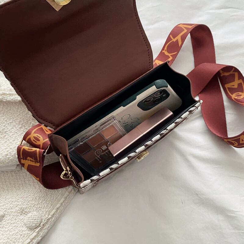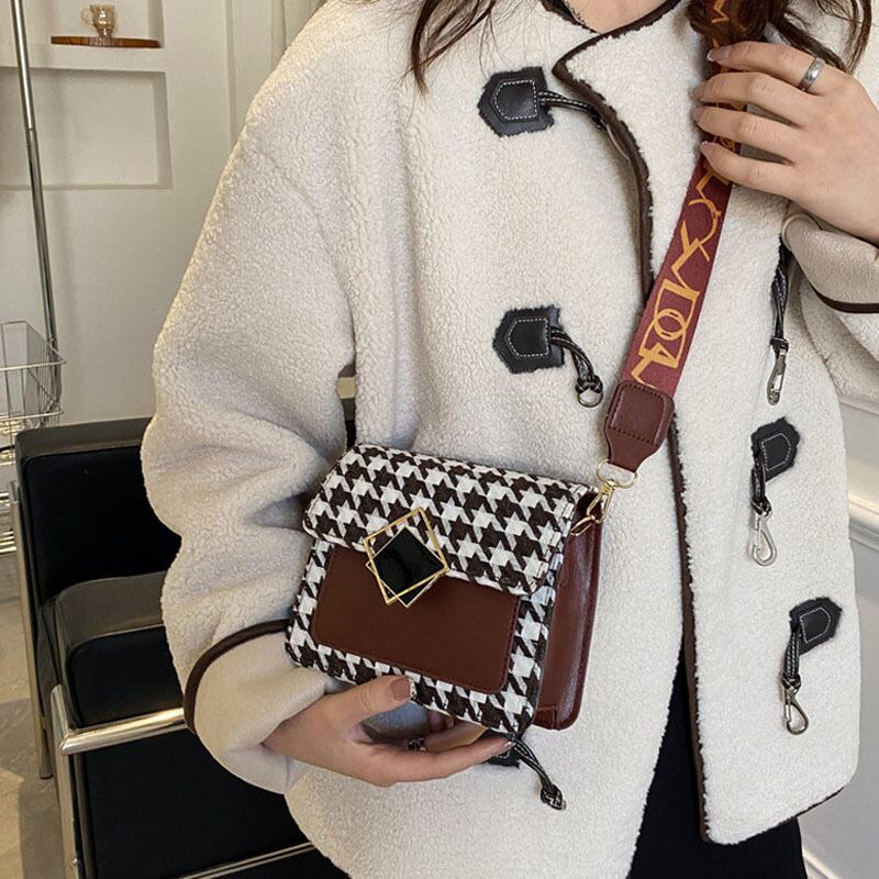 スタイルスモールバッグ 2021 新しいトレンディファッショナブルで多用途なワイドショルダーストラップウール千鳥格子シングルショルダークロスボディ小さなスクエアバッグ スクウェア maibag14091065124