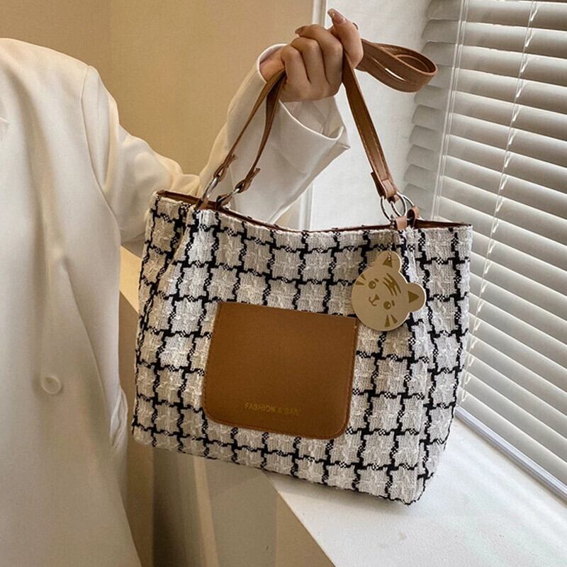 大容量バッグ女性 2022 新しいハイエンド市松模様のコントラストショルダーバッグ学生 cl 通勤トートバッグ maibag59748642789