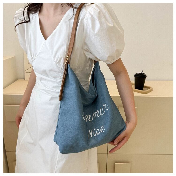 大容量デニムバッグ女性 2023 新しいトレンディなレトロトートバッグニッチな質感通勤ショルダーバケットバッグ トートバッグ maibag22642303424