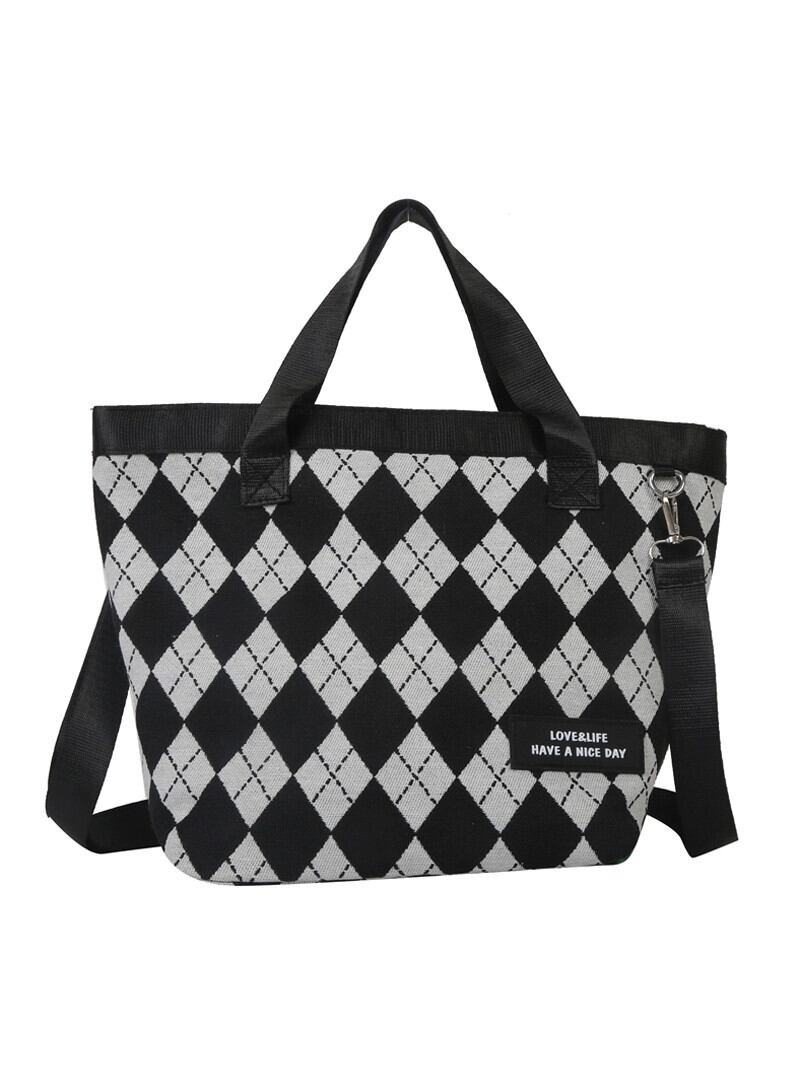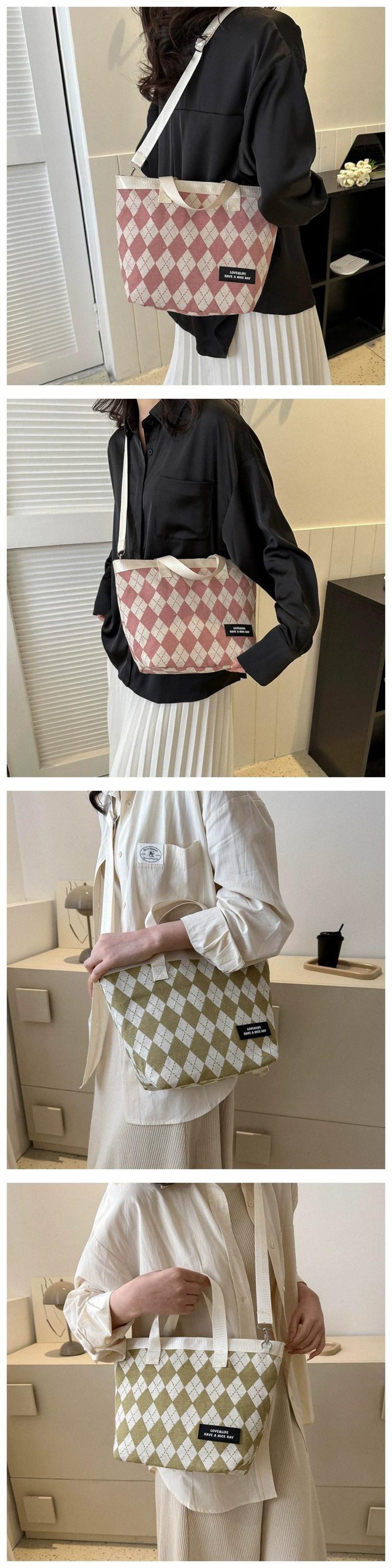 今年の人気バッグ 2023 レディース 大容量 トートバッグ ショルダー クロスボディバッグ 学生 ひし形チェック柄 キャンバス 通勤バッグ maibag54816790031