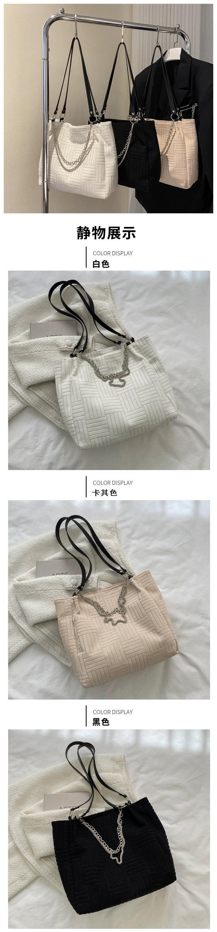 ニッチな水平と垂直パターンの大容量トートショルダーバッグ女性 2022 新しいスタイルのシンプルで多用途なチェーンポータブル通勤バッグ トートバッグ maibag60521589502