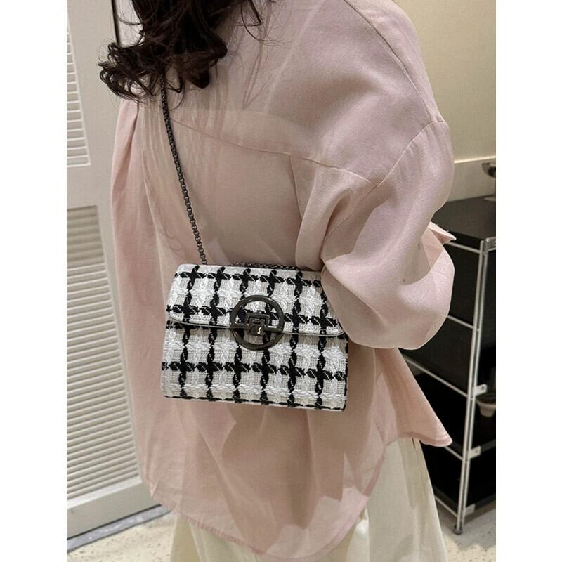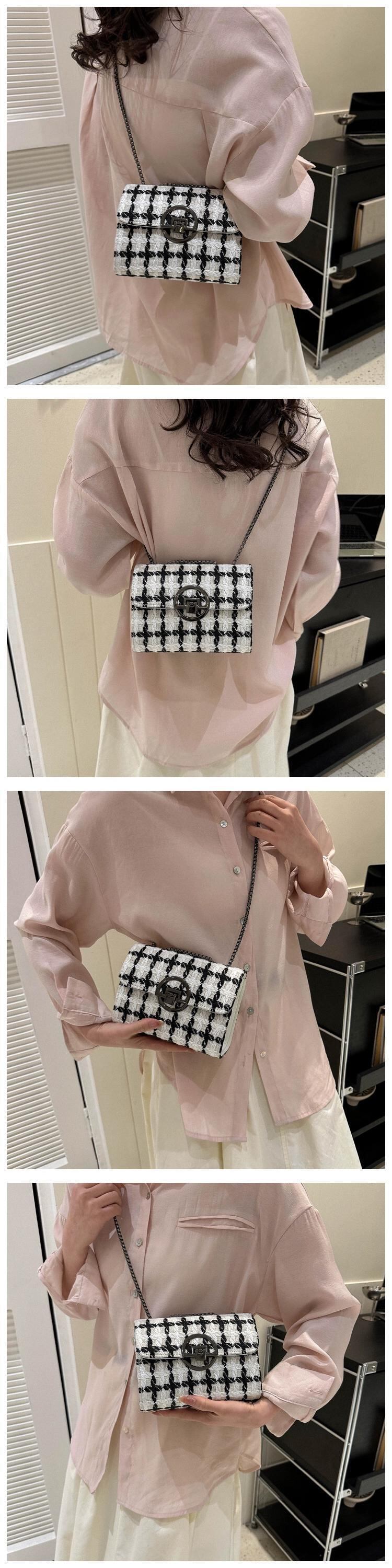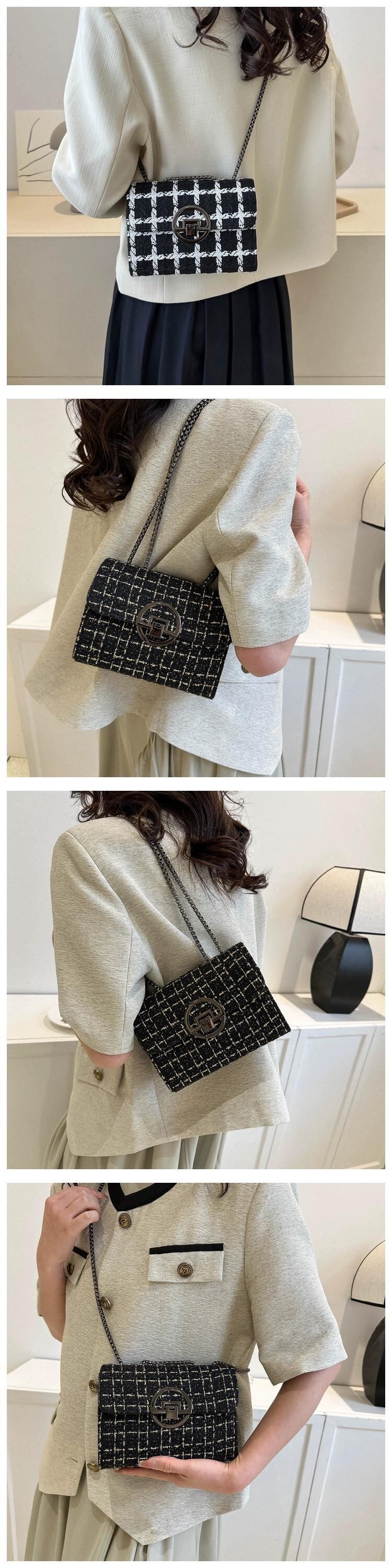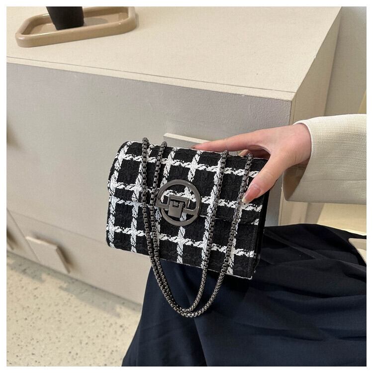 2023 新スタイルトレンディな質感通勤チェック柄脇の下バッグウールチェーンハイエンドシングルショルダークロスボディバッグ小さな正方形バッグ女性 スクウェア maibag4286884637