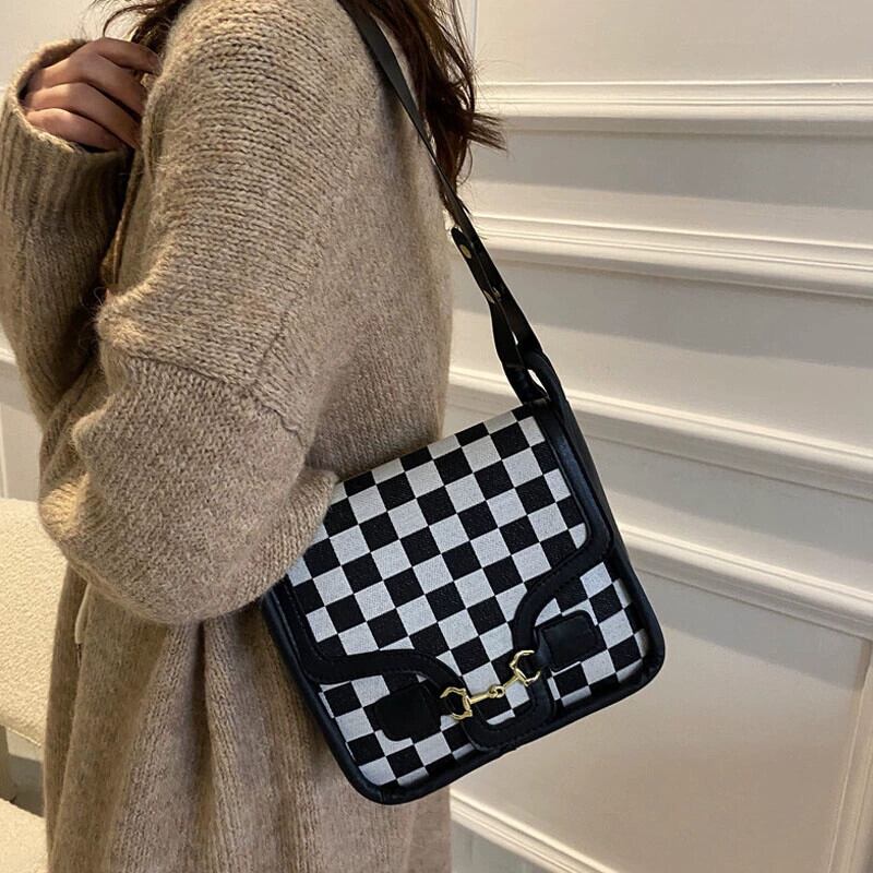 チェッカーボードバッグ女性 2021 新しい多用途 in クロスボディバッグ秋と冬のファッション人気のシングルショルダー小さなスクエアバッグトレンディ オータム 秋物 ウィンター 冬物 スクウェア maibag83358013310