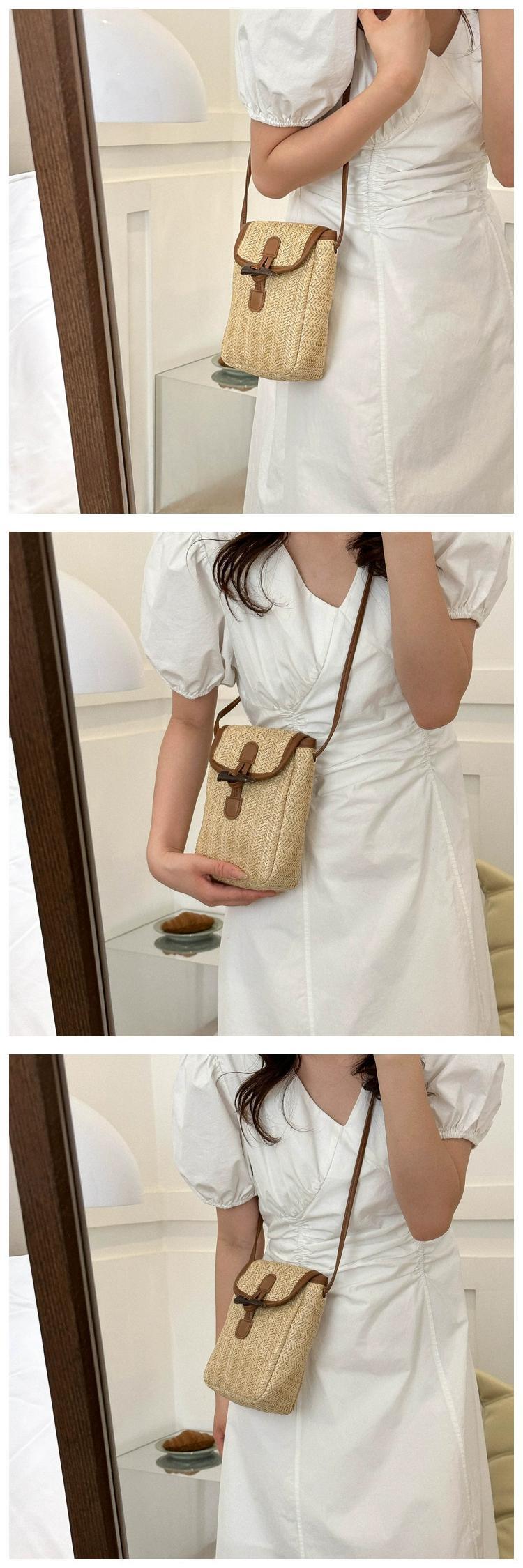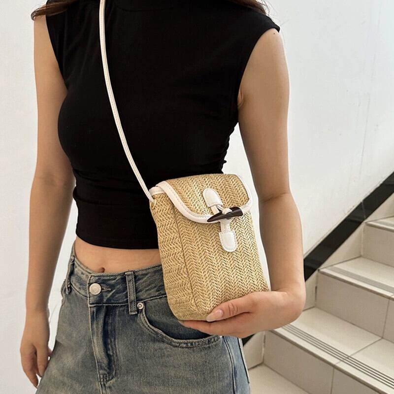 わら織携帯電話バッグ女性 2023 新しいスタイルの小さなバッグニッチデザイン休暇多用途織クロスボディ小さな正方形のバッグ スクウェア maibag51679863645
