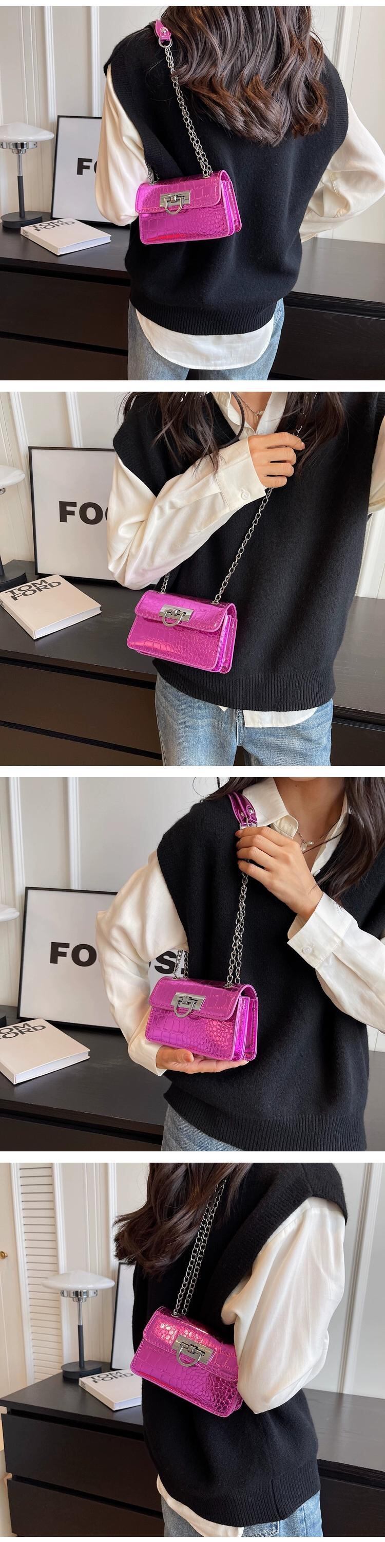 小さなバッグの女性 2023 新しいトレンディでファッショナブルな通勤パテントレザー光沢のあるシングルショルダー小さなスクエアバッグクロコダイルパターンチェーンクロスボディバッグ スクウェア maibag22010261121