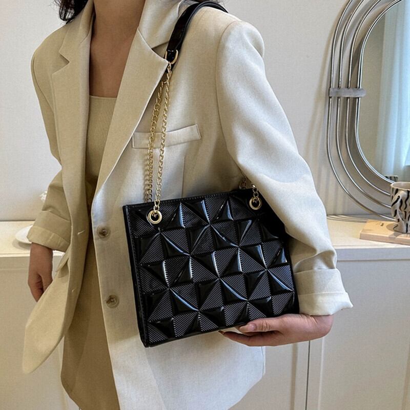 テクスチャバッグの女性 2023 新スタイルトレンディな小さな正方形のバッグシングルショルダークロスボディバッグファッションレトロ脇の下バッグ菱形チェーンバッグ レッド スクウェア maibag68513809443