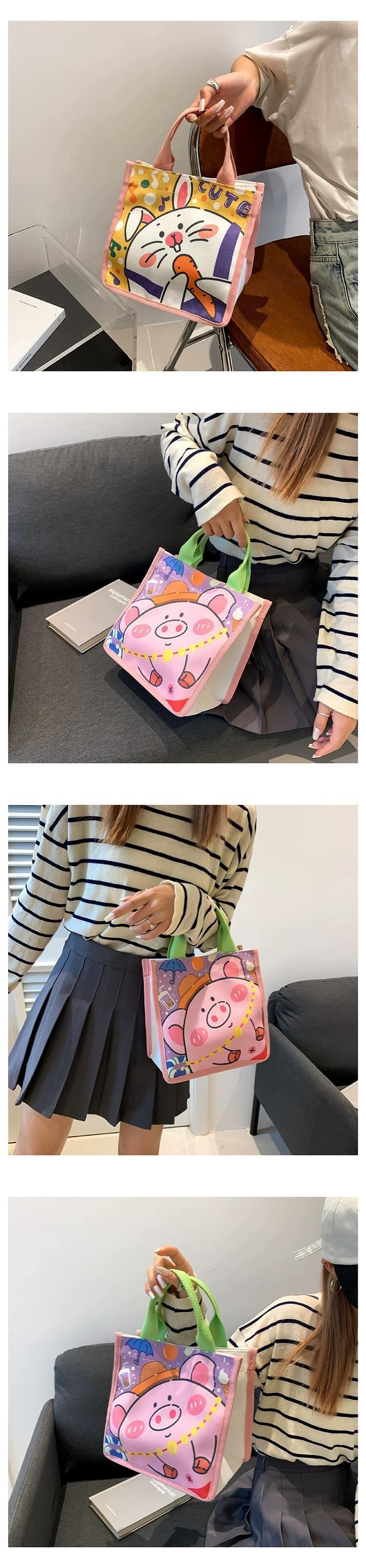 2023 トレンディな漫画手持ちミニランチボックスキャンバス小さなバッグかわいいポータブルランチバッグトートレディース 大人ガーリー スウィート キュート カジュアル トートバッグ maibag81398118131