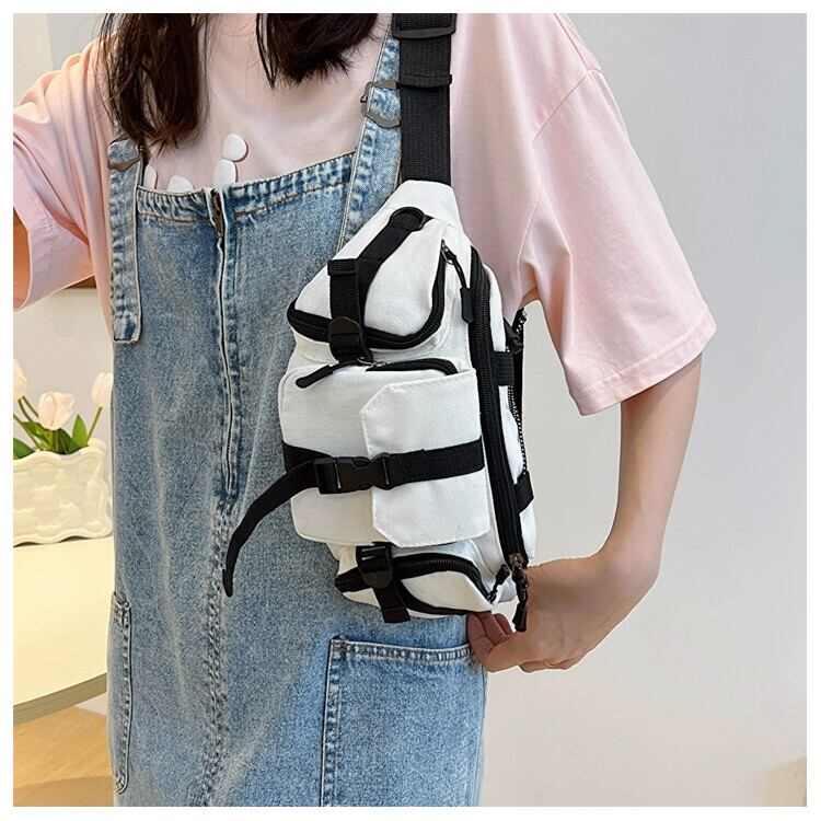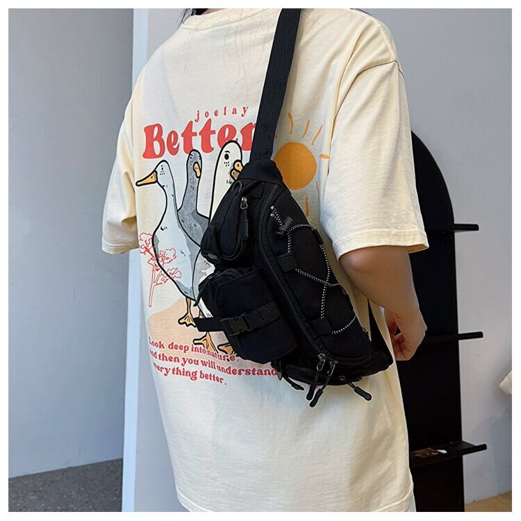 ese 原宿香港スタイルのレトロなストリートトレンドチェストバッグメンズバージョンユニセックスワークウェアクロスボディバッグ多用途ウエストバッグ かわいい maibag1708766598