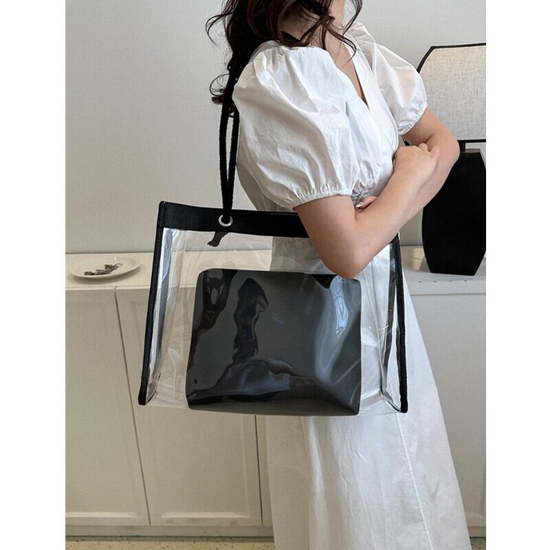大容量透明バッグ女性 2023 新しいトレンディな PVC 義母ゼリーバッグハイエンド多用途ショルダートートバッグ maibag58274843478