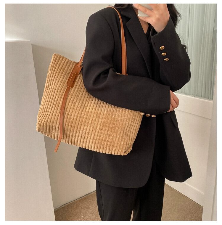 大容量バッグ女性 2023 新しいコーデュロイトートバッグ、多用途大学生通勤ポータブルショルダーバッグ maibag54819690432