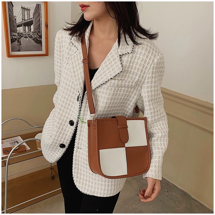 秋と冬の市松模様のポータブル大容量通勤小さなバッグの女性 2021 新しいトレンディなコントラストカラーのファッションワンショルダーバケットバッグ オータム 秋物 ウィンター 冬物 maibag3300232005
