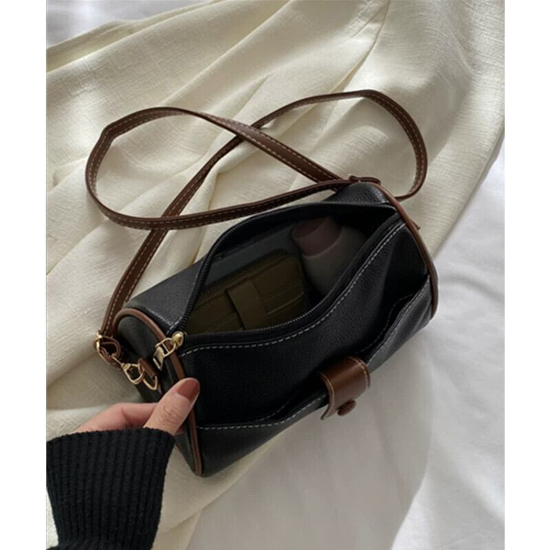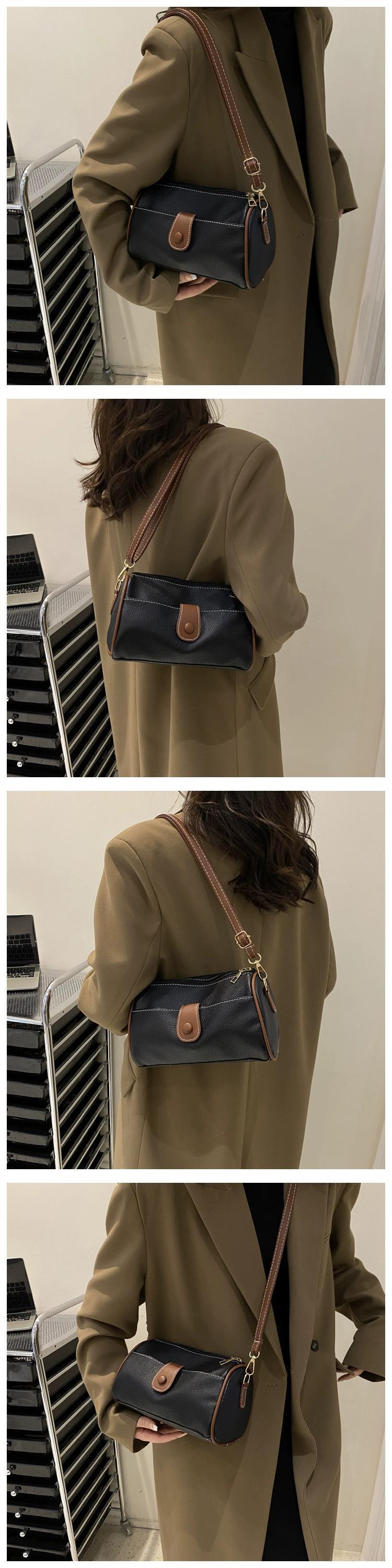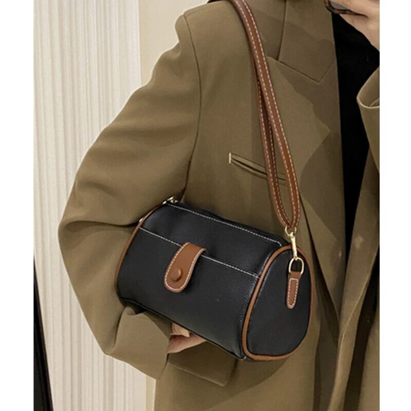 バージョン 2023 新しいトレンディなレトロな枕バッグボストン小さな円筒形バッグシングルショルダークロスボディコントラストカラーハンドバッグ女性 maibag11292149050