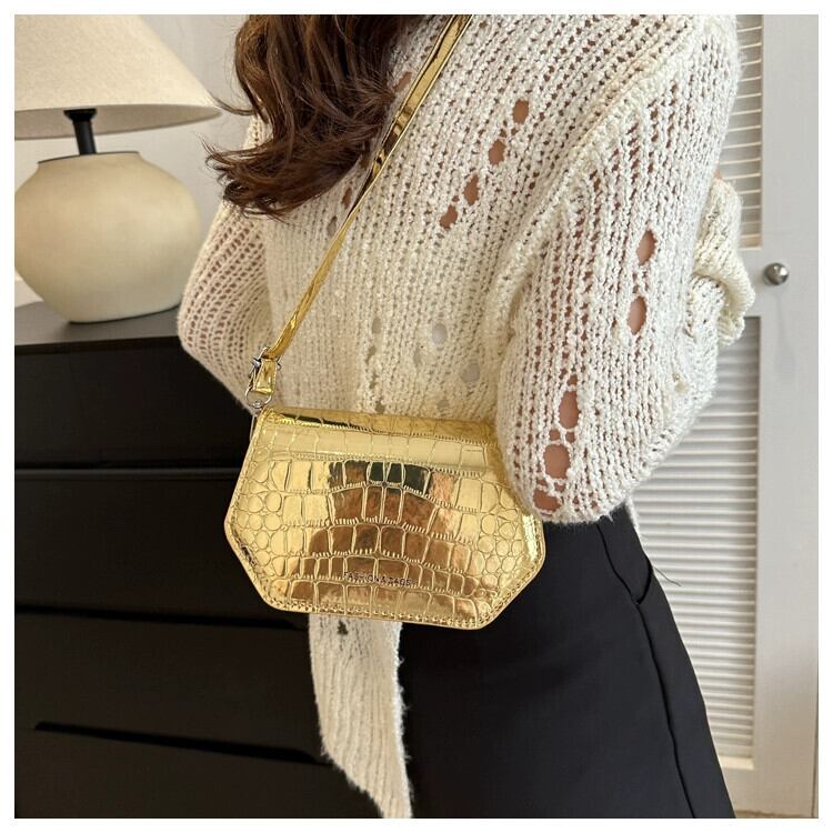 小さなバッグの女性 2023 新しいトレンディでファッショナブルな多目的パテントレザー光沢のあるワンショルダー携帯電話小さな正方形のバッグクロコダイルパターンクロスボディバッグ スクウェア maibag74634401527