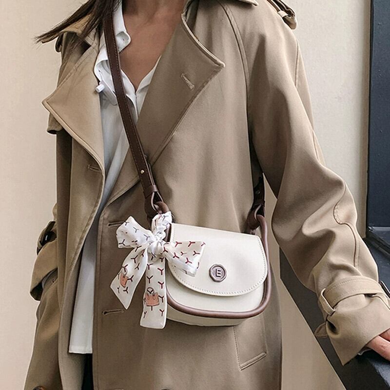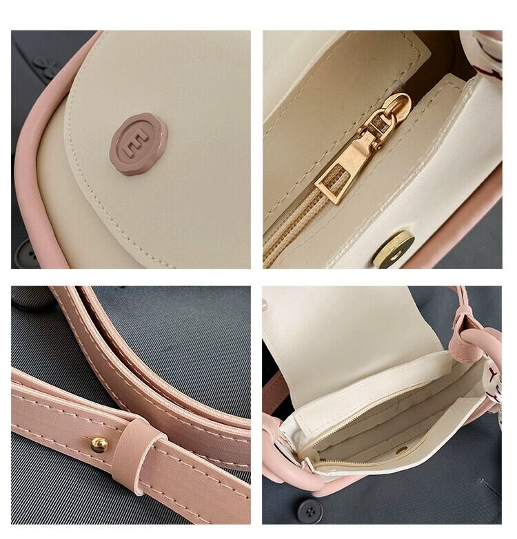 2023 トレンディなバッグのテクスチャレトロかわいいコントラストカラーサドルバッグ ese ポータブルシングルショルダークロスボディバッグ女性 大人ガーリー スウィート キュート カジュアル シートバッグ maibag31448457742
