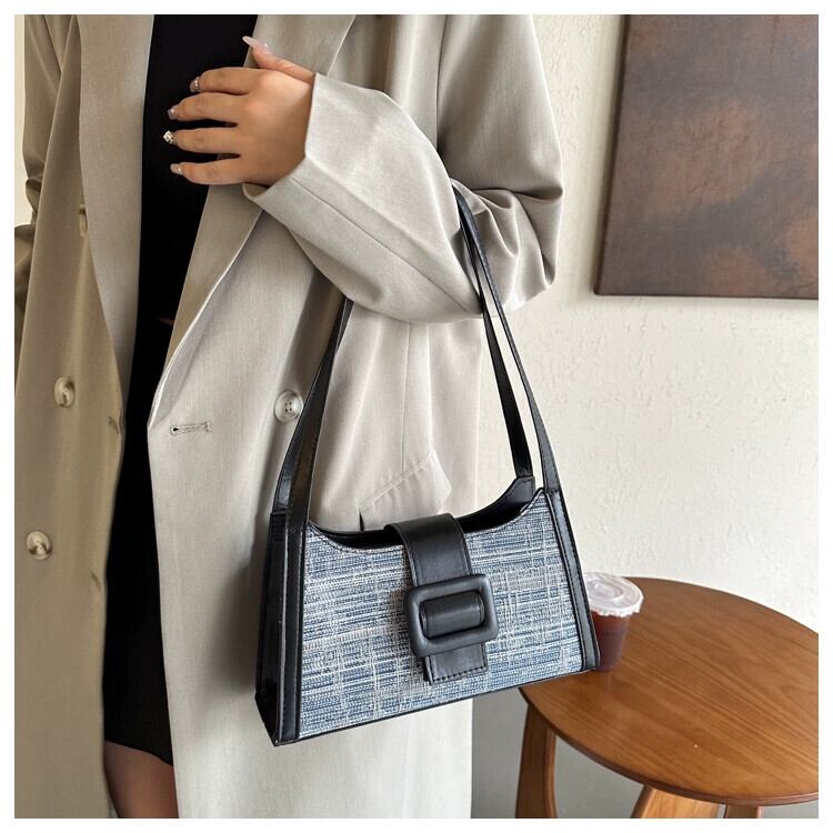 デニムコントラストカラーの小さなスクエアバッグ女性の 2023 トレンディな脇の下バッグニッチテクスチャ大容量ショルダーバッグ スクウェア maibag5594664049