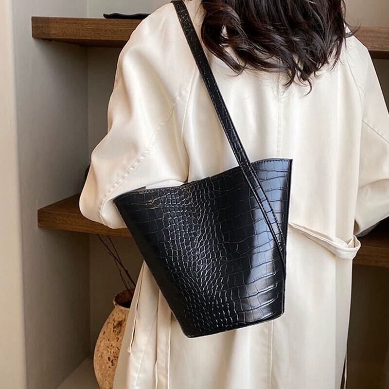 気質と多用途のパテントレザー光沢のあるクロコダイル柄バケツかごバッグ怠惰なスタイルのトートバッグショルダーバッグ大容量バッグ女性 maibag30530822529