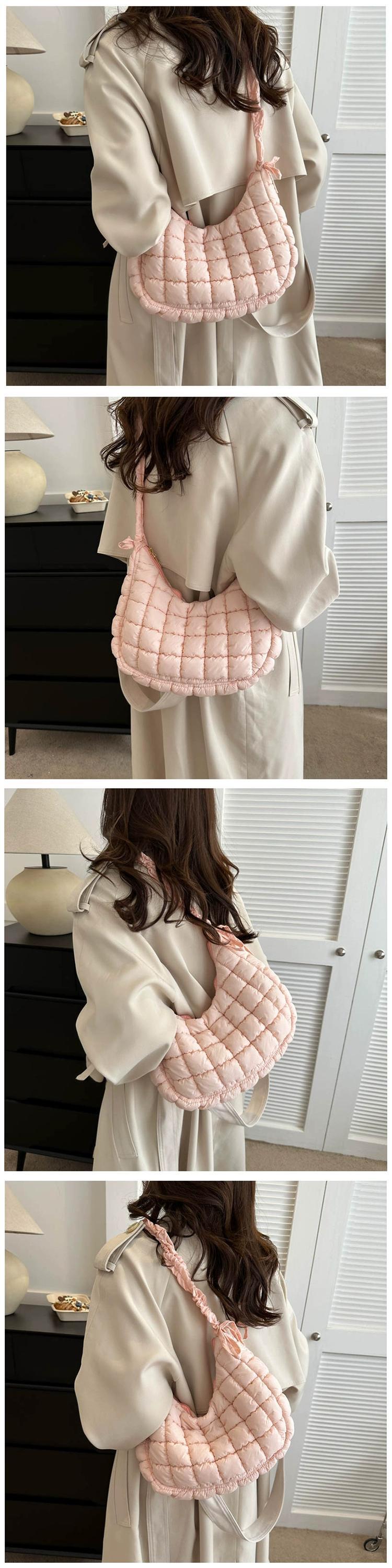 秋と冬の軽量大容量バブルバッグ女性 2023 新しいインターネットセレブハイエンド菱形プリーツシングルショルダークロスボディバッグ オータム 秋物 ウィンター 冬物 maibag86734904235