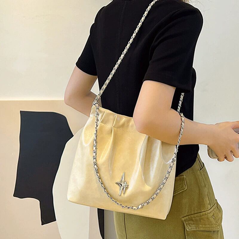 スタープリーツ通勤脇の下バケットバッグ 2023 トレンディなチェーンレトロワンショルダークロスボディ大容量バッグ女性 maibag99268818530