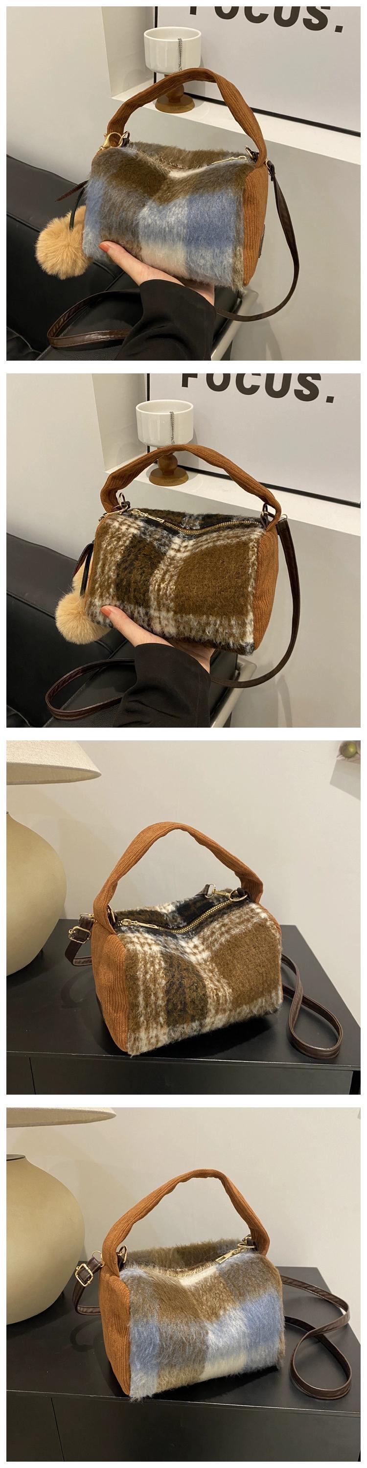 ニッチウール小さなバッグ女性 2023 秋と冬の新しいポータブル枕バッグチェック柄多用途通勤クロスボディバッグ オータム 秋物 ウィンター 冬物 maibag84399678447