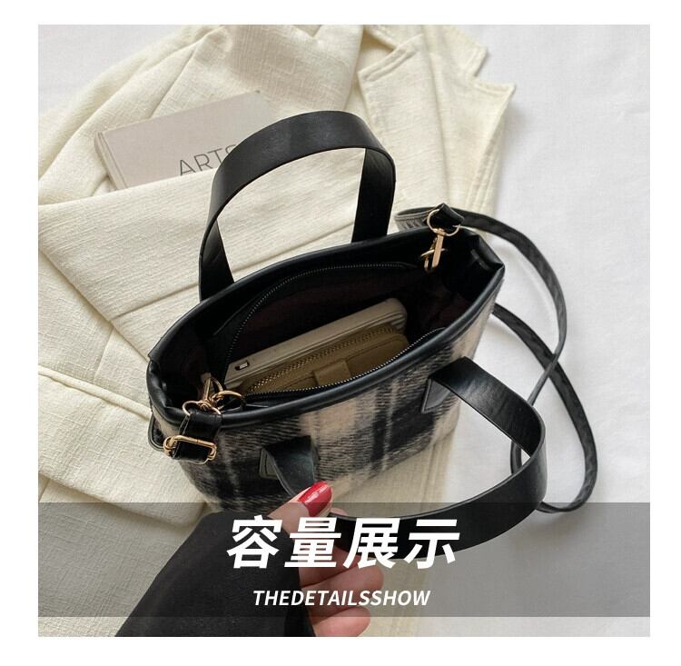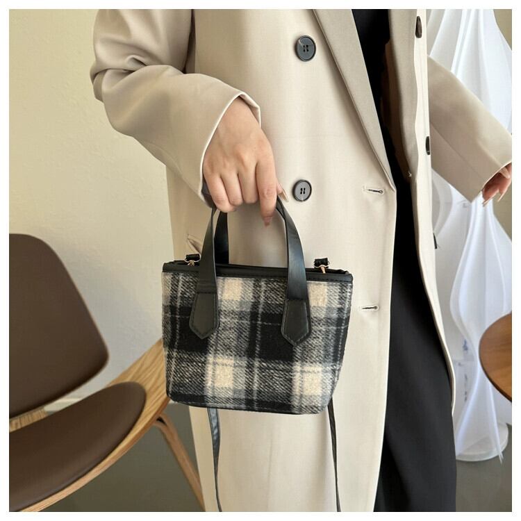 秋と冬のウールチェック柄バッグ女性 2023 新しいスタイル多用途ショルダークロスボディバッグ高品質の質感ポータブルバケットバッグ オータム 秋物 ウィンター 冬物 maibag29603765997