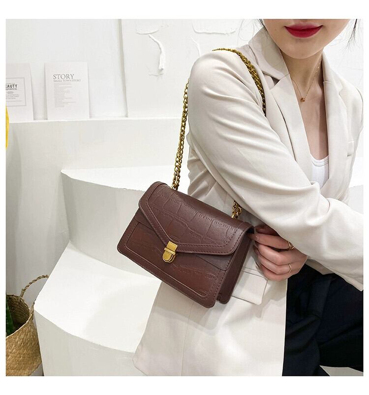 ニッチデザインストーンパターンシングルショルダー小さなバッグ 2021 新ファッション春シンプルなチェーン小さなスクエアバッグクロスボディバッグ女性 スプリング 春物 スクウェア maibag30227468136