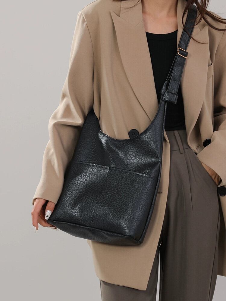 レトロカレッジスタイルのソフトレザートートバッグ、カジュアル、シンプルで多用途、ショルダーバッグ、大容量の義母バケットバッグレディース maibag16360518854