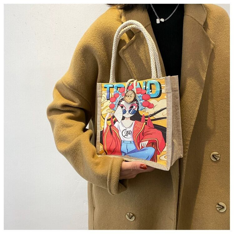ese キャンバスバッグレディースバッグ 2022 新しいファッションシンプルで多用途なプリントランチハンドバッグの小さな仕事バッグ maibag9966478061