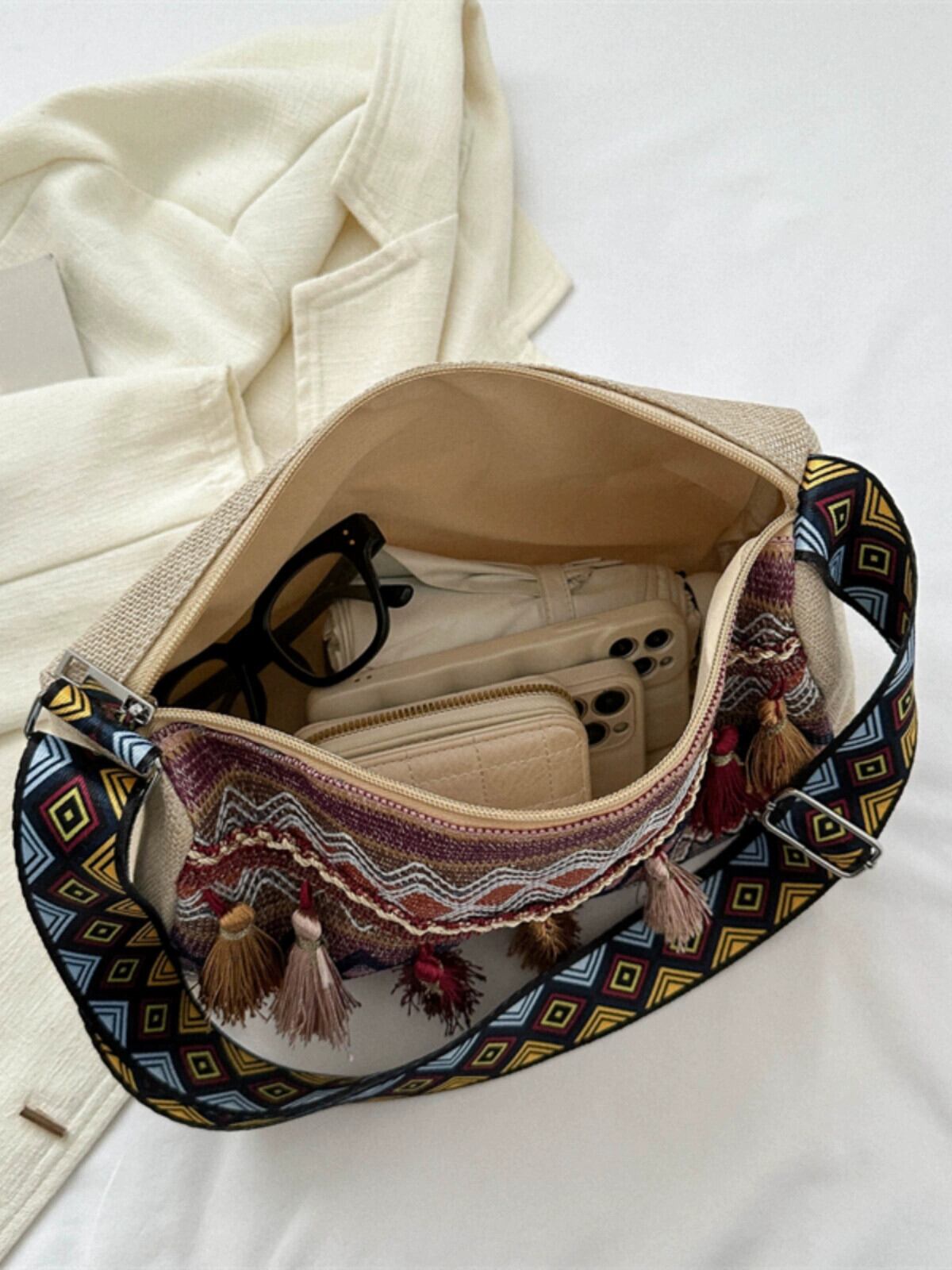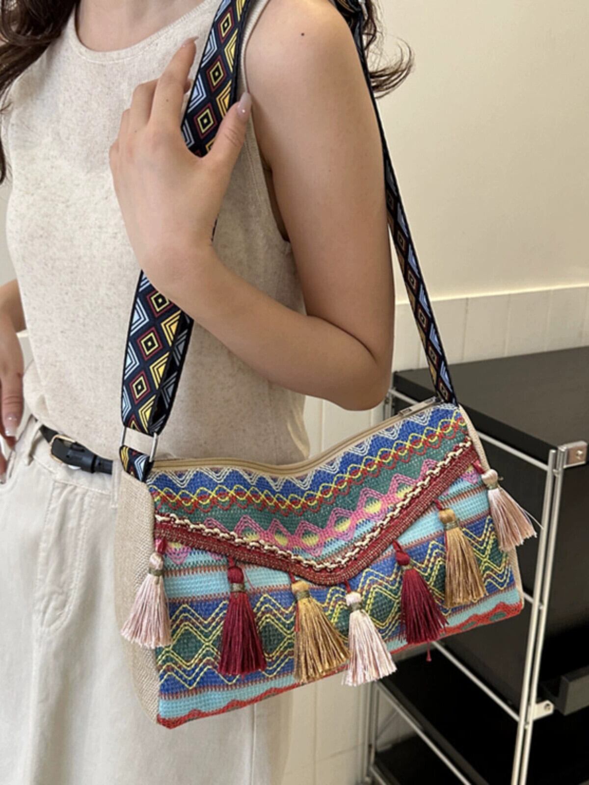 刺繍入りエスニックスタイルホリデークロスボディバッグ女性 2023 新しいトレンディな多用途ワイドショルダーストラップ小さな新鮮な電話バケットバッグ レッド maibag20588614799