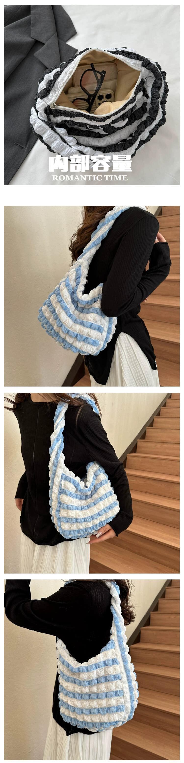 ガールズスタイルプリーツカラーストライプクラウドバッグ2023新しいカジュアル多用途バブル大容量通勤クロスボディバッグ maibag23623811290
