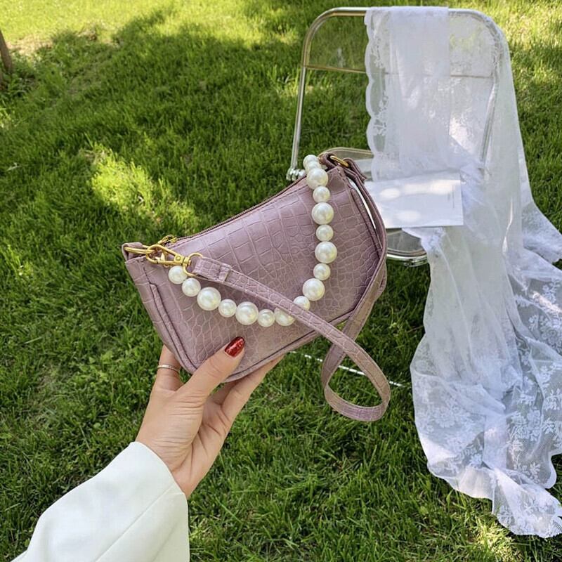 バッグ 2020 新しいトレンディなインターネットセレブ多用途クロコダイルパターンパールチェーン脇の下バッグ女性のハイエンドバゲットショルダーバッグ 真珠 maibag92424886613