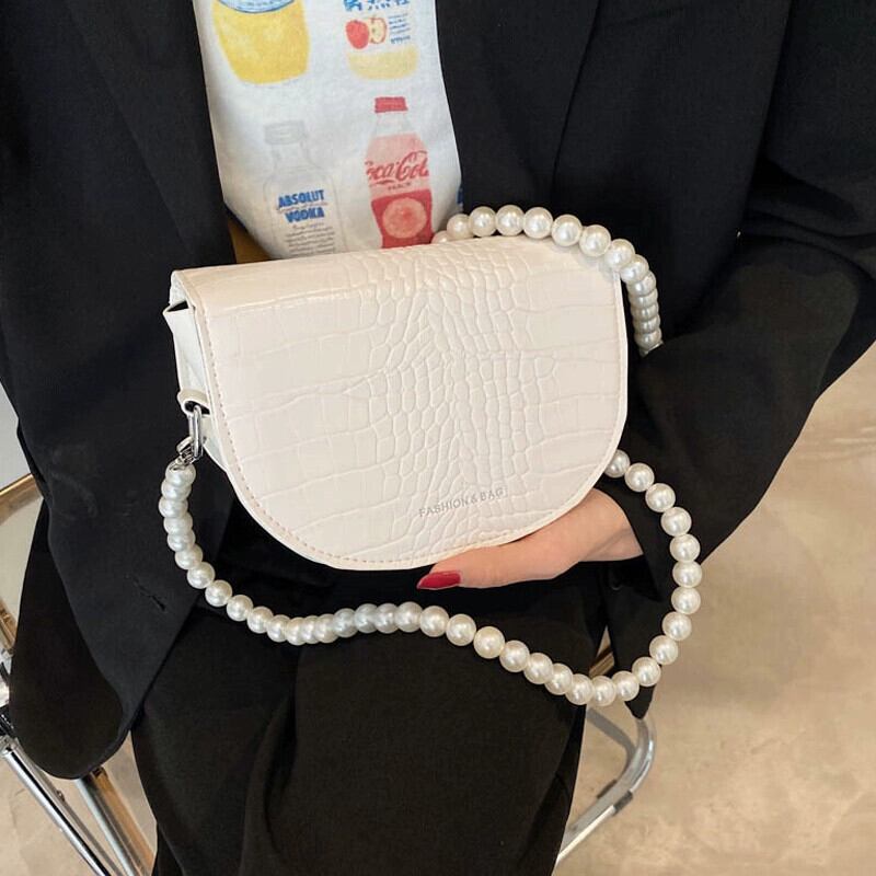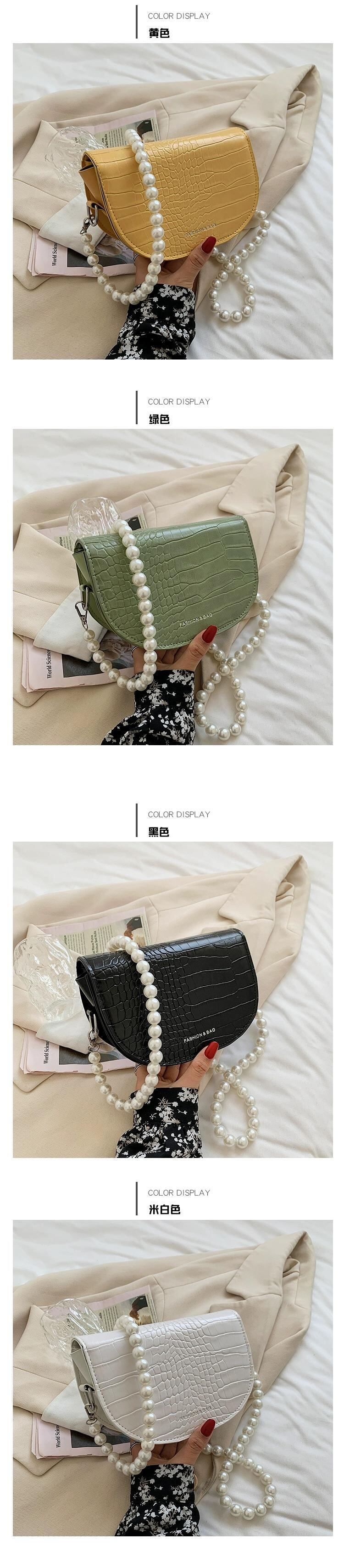 -end クロコダイルパターンバッグ女性 2021 新しいトレンディなファッションパールチェーンクロスボディバッグインターネットセレブ人気サドルバッグ 真珠 シートバッグ maibag40114236787