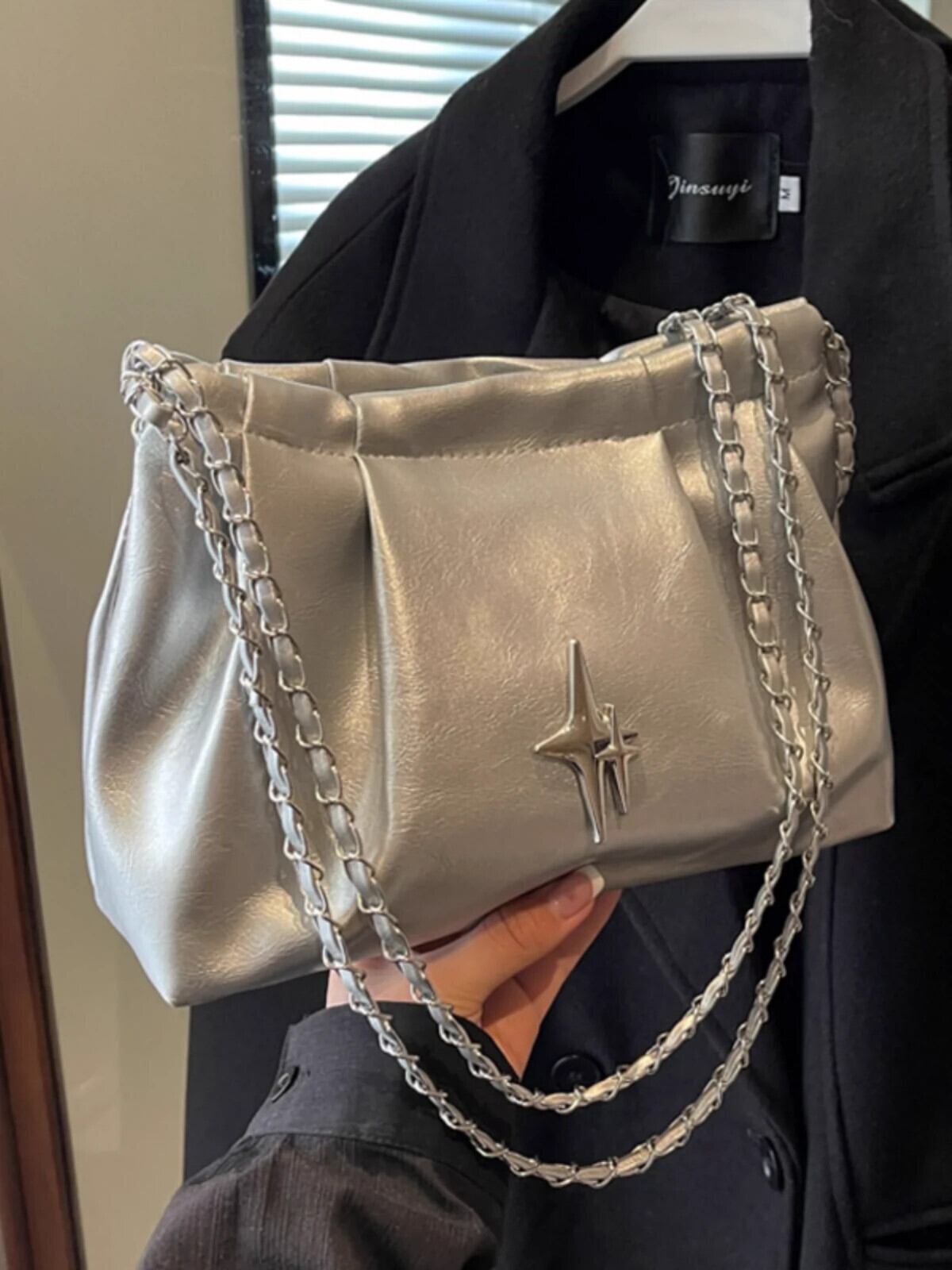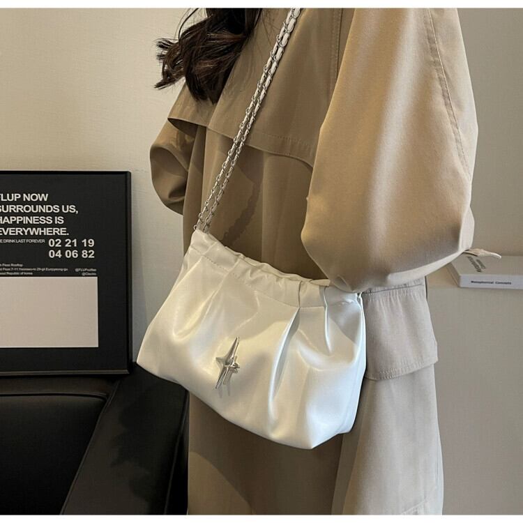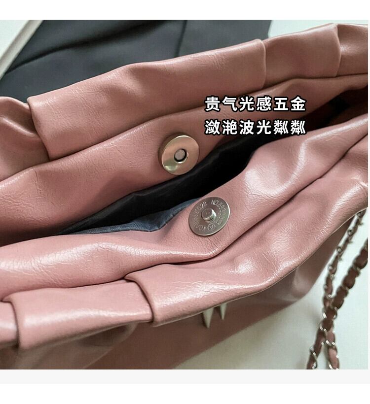 シルバーファッションバッグ大容量ストリート2024春夏新スタイルシングルショルダー大型バッグプリーツ通勤カジュアルショルダーバッグ スプリング 春物 サマー 夏物 銀 maibag53006298849