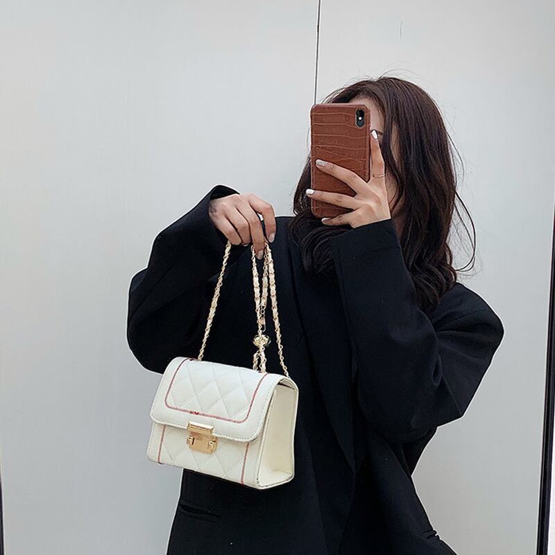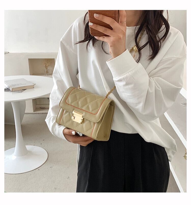 人気のチェーンバッグの女性 2021 夏の新しいトレンディなファッションインターネット有名人人気のクロスボディバッグ菱形ロックバックル小さなスクエアバッグ サマー 夏物 スクウェア maibag36949460760