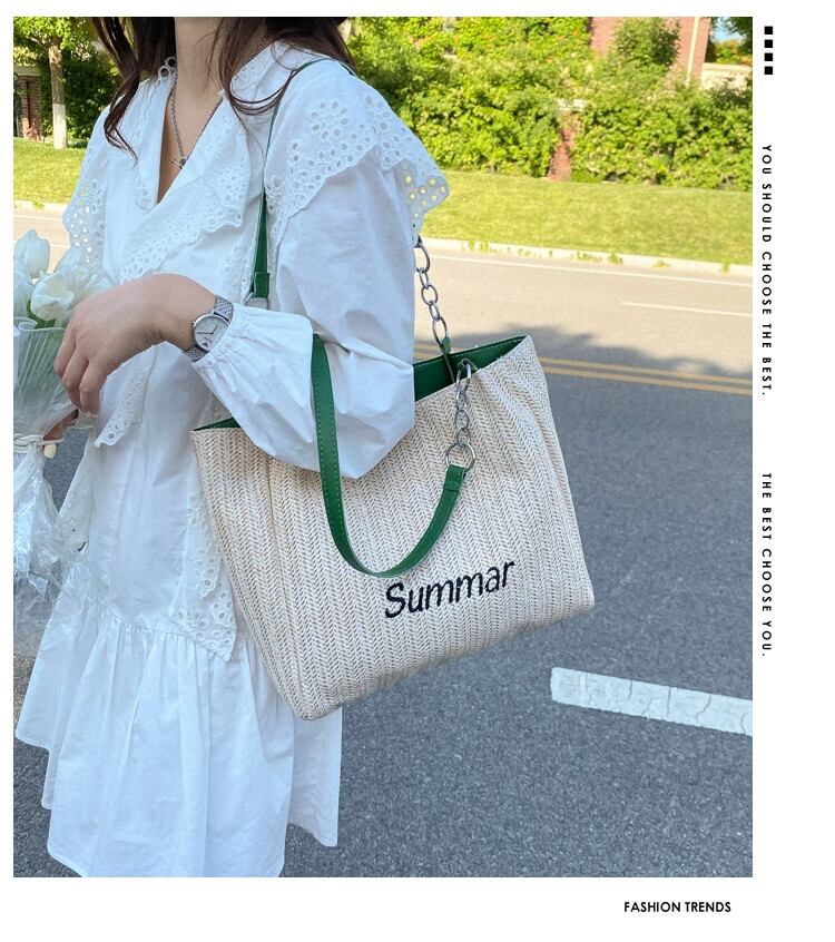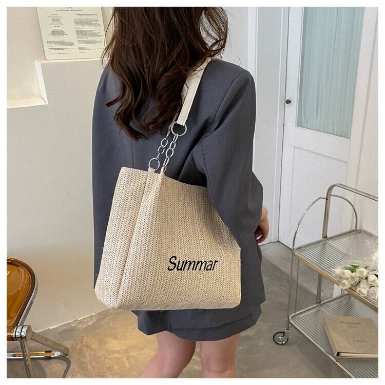夏わら大容量バッグ女性 2022 新しいニッチ多用途織バッグ西洋スタイル通勤ショルダートートバッグ サマー 夏物 maibag77684569340
