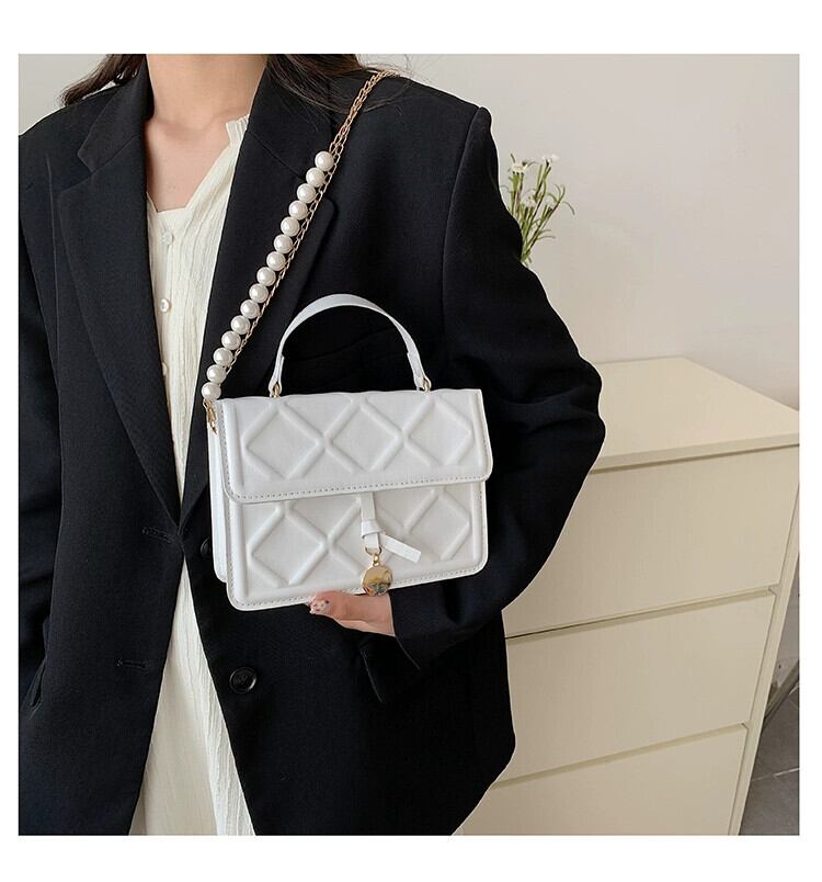 西洋スタイル菱形パールチェーンバッグ 2022 新しいトレンディなファッション女性インターネット有名人のレトロな小さな正方形のバッグシングルショルダークロスボディバッグ 真珠 スクウェア maibag96681537909