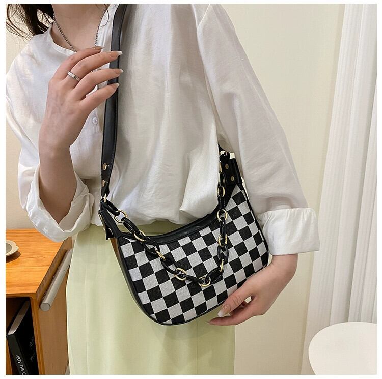 多用途 ins クロスボディバッグ女性 2022 新しいトレンディなファッションレトロ市松模様のチェーンサドルニッチ脇の下バッグ maibag77145812890
