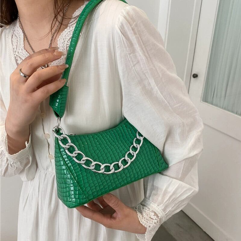 2022 新しいトレンディな女性のバッグデザインテクスチャワニパターンレトロファッションシンプルな多用途ワンショルダーバゲット脇バッグ ショルダーバッグ maibag53441035717