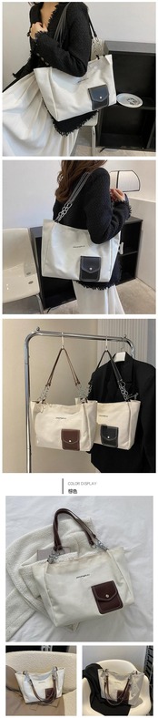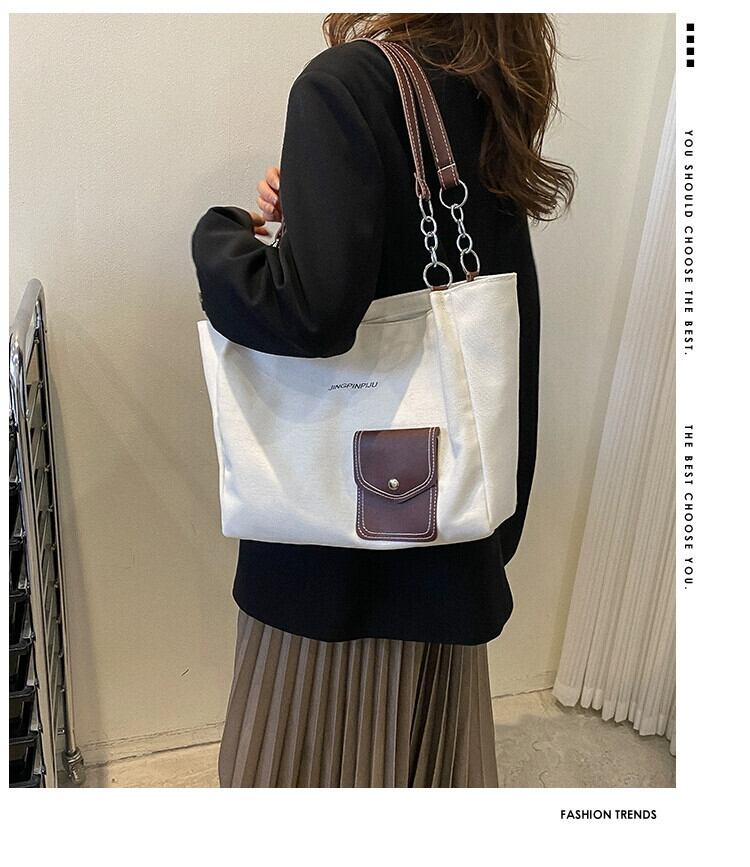 大容量キャンバスバッグ女性 2022 新スタイルトレンディカジュアル怠惰なカレッジスタイル対照的なシングルショルダートートバッグ学生バッグ maibag91974292306