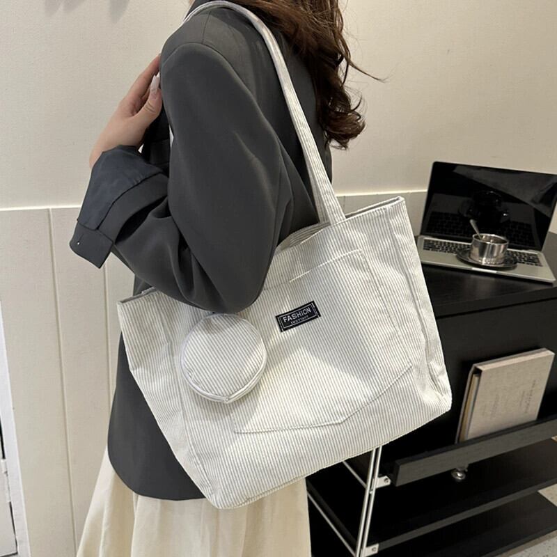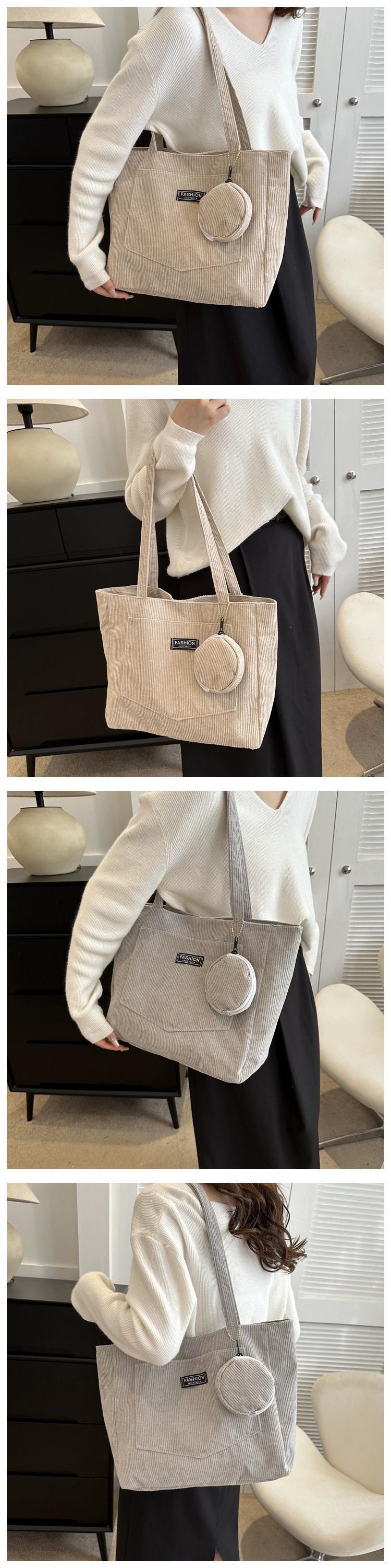 トートバッグ女性大容量 2023 新しいトレンディな大学生通勤バッグレトロコーデュロイポータブルショルダーバッグ maibag7399325766