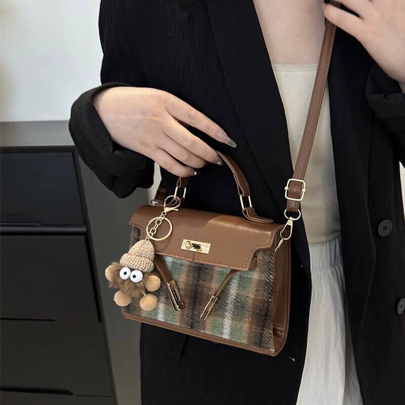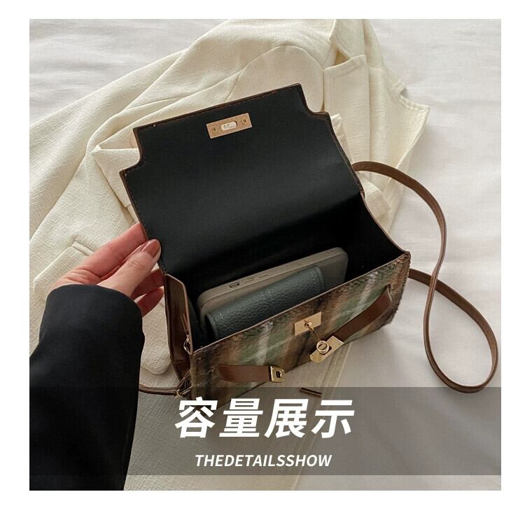 フレンチスモールハンドバッグレディース2024春コントラストカラーウールケリーバッグニッチレトロショルダーバッグ スプリング 春物 maibag13181194194