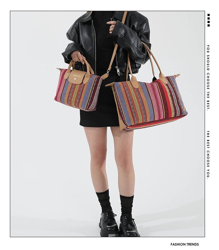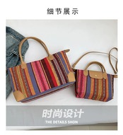 キャンバス大型バッグ女性の大容量 2024 新しいファッション春と夏のシングルショルダー大型バッグチェック柄ポータブル通勤トートバッグ スプリング 春物 サマー 夏物 maibag85819419243