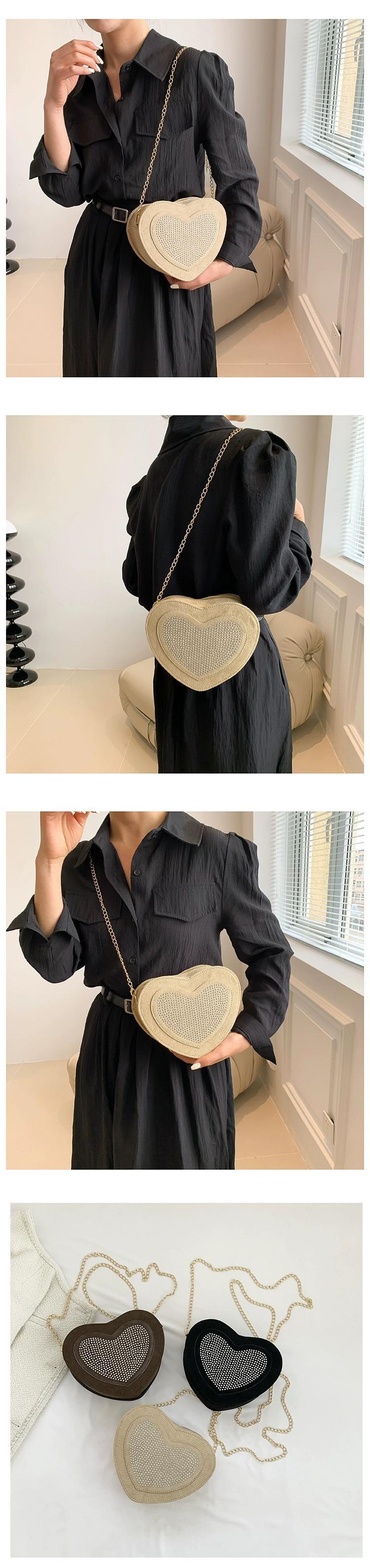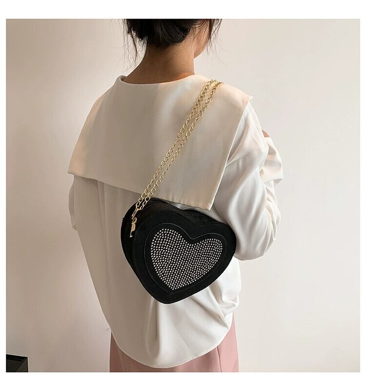 バッグ レディース、新しいトレンディな 2023 人気のハート型レトロ多用途テクスチャニッチ スパンコール チェーン ショルダー クロスボディ バッグ maibag91518394508
